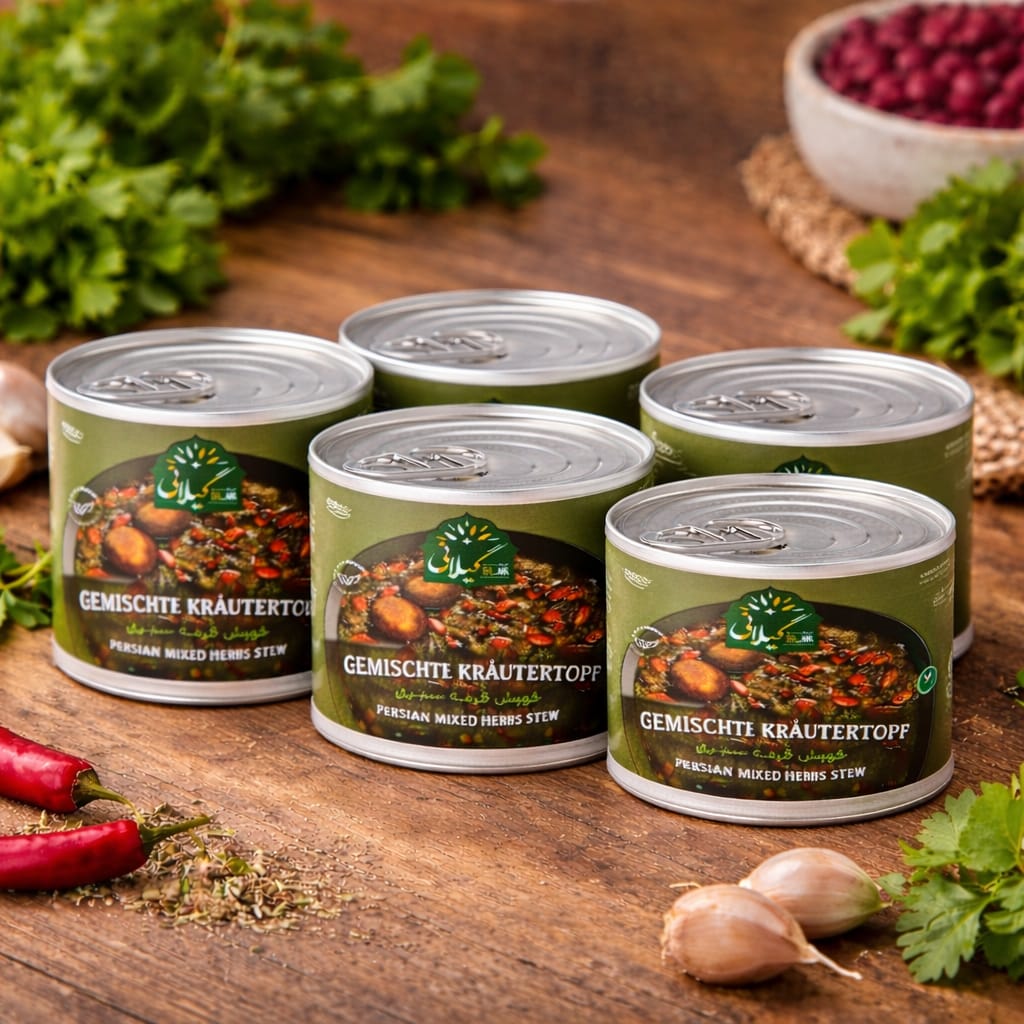 Enjoy the rich, comforting taste of traditional Persian Ghorme Sabzi with this Gilani meat-free canned version, made for quick, hearty, and flavourful meals. Each can contains a beautifully blended mix of fresh herbs and classic seasonings, slow-cooked to deliver the deep, aromatic taste Ghorme Sabzi is known for—without the need for meat.